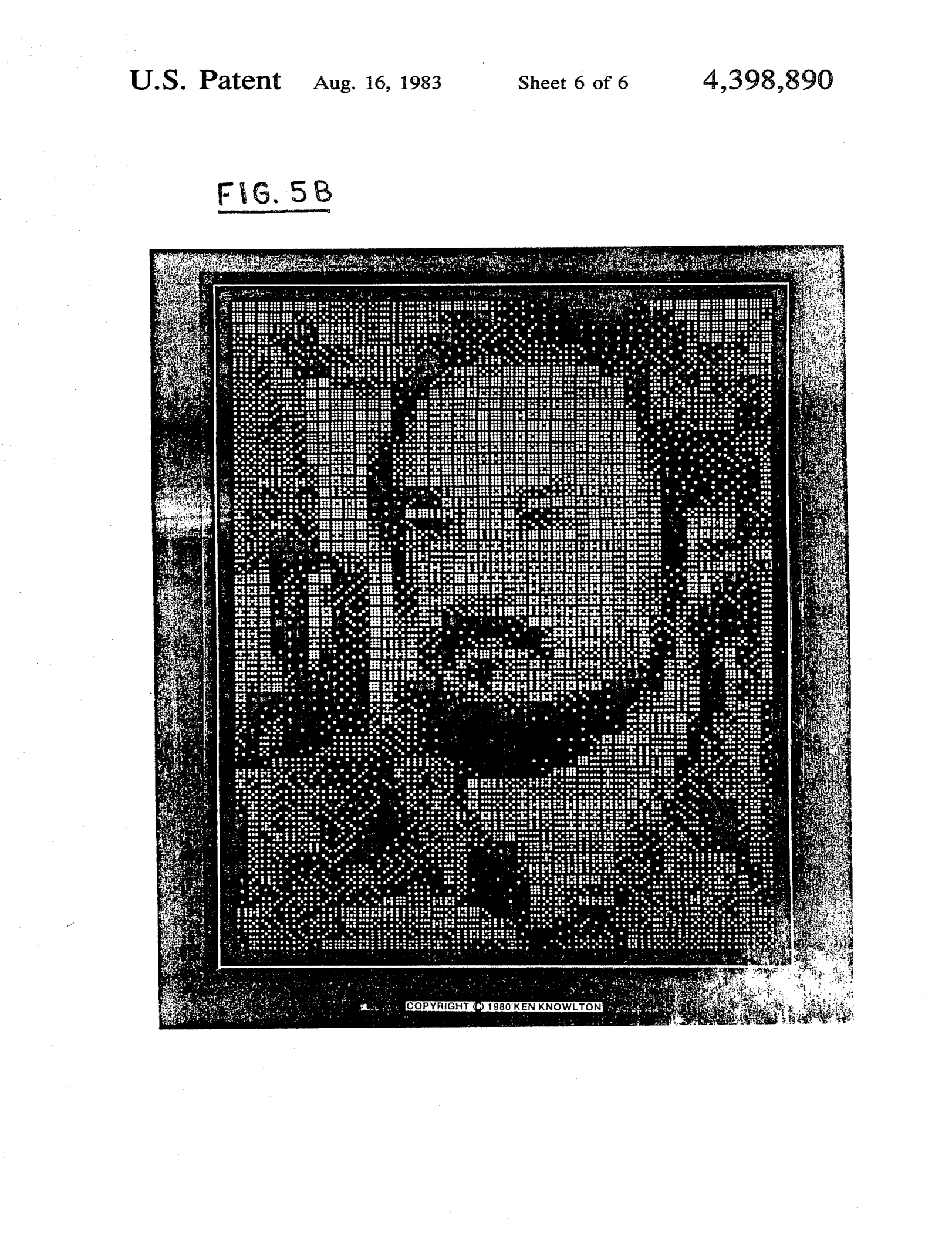 We were pleasantly surprised to find this Kenneth Knowlton work in the wild. Technically, it’s not an original Knowlton but rather, a work from Domino-Pix by Metron Studios. Domino-Pix was an early 80s collaboration with computer/video art pioneer Lou Katz [Side note: check out this 1975 synth delight Ms. Muffet]. Domino-Pix made use of Knowlton’s patented system for rendering images with physical dominoes. This image is of Marylin Monroe–you may need to stand back a bit, squint, or zoom out to fully see it.