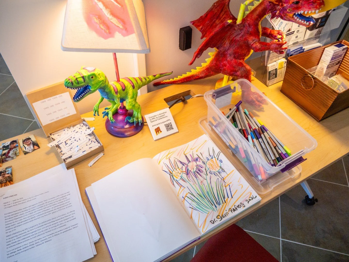 As part of OPEN’s collabortion with the Providence Public Library, AS220, and the City of Providence’s Department of Art, Culture and Tourism, an exhibition celebrating the life and art of Adrian “Paris” Fernandez (1996-2026) was organized for March and April of 2026. Below are photos of the install and reception taken by Jay Ruzicka for the PPL.